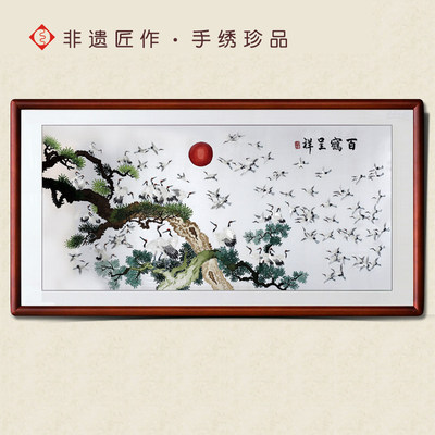 有福湘绣古典百鹤图客厅装饰画仙鹤挂画荷塘清趣送长辈祝寿礼品 虎窝淘